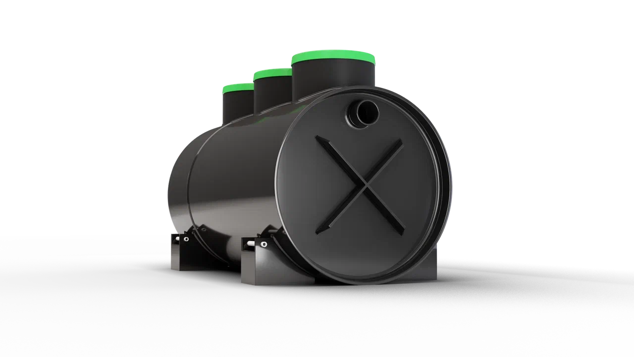Септик также оснащен системой аэрации и эрлифтов с компрессором, которая позволяет повысить степень очистки септика, что позволит еще реже обслуживать систему почвенной доочистки (дренажную траншею или колодец). Компрессор входит в комплект поставки.